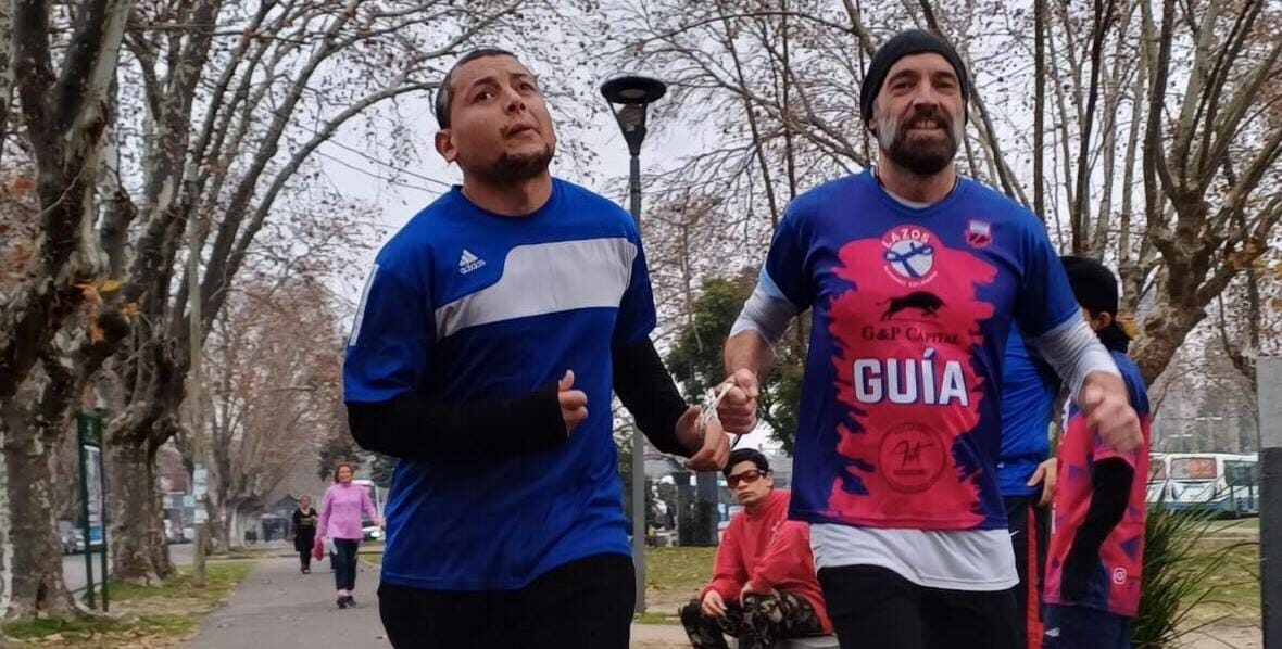 El encuentro de Hernán con Lazos fue la puerta de entrada a un camino de aprendizaje y compromiso. Consciente de la enorme responsabilidad que implicaba acompañar a personas con discapacidad visual, decidió capacitarse y realizó un curso de guía ofrecido por la asociación. Desde entonces, cada sábado por la mañana se suma a los entrenamientos frente a la plaza del centro de la localidad bonaerense de Burzaco, donde corre junto a atletas ciegos y de baja visión.